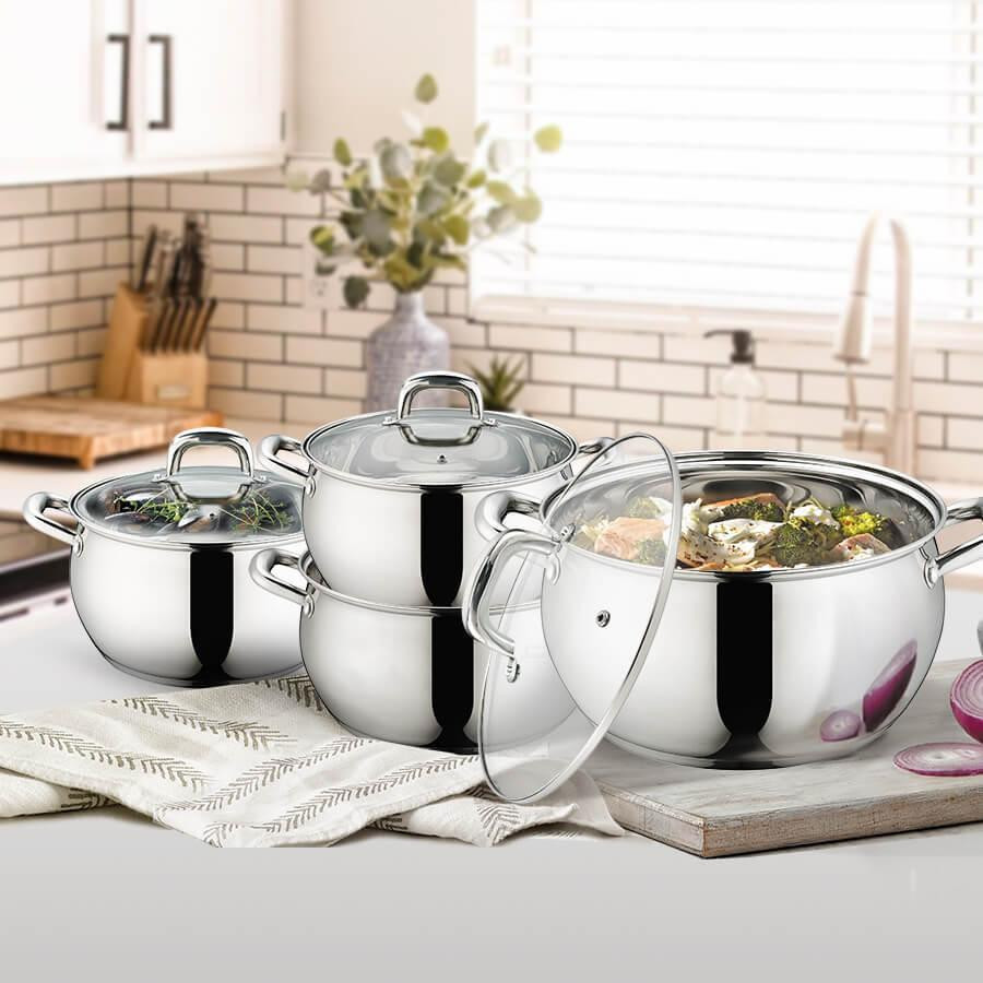 Набір з 8 предметів: 4 каструлі з кришками