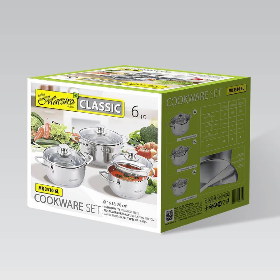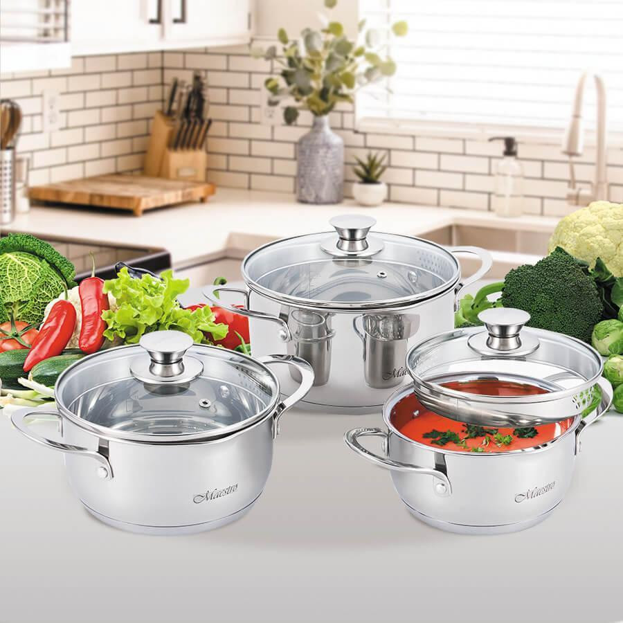 Набір каструль з кришкою Maestro MR-3510-6L, 3 каструлі, 3 кришки, 1.6/2/3л
