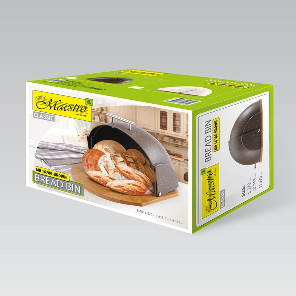 Хлібниця Maestro MR-1678G-Brown, дерев'яна основа, темно-коричнева