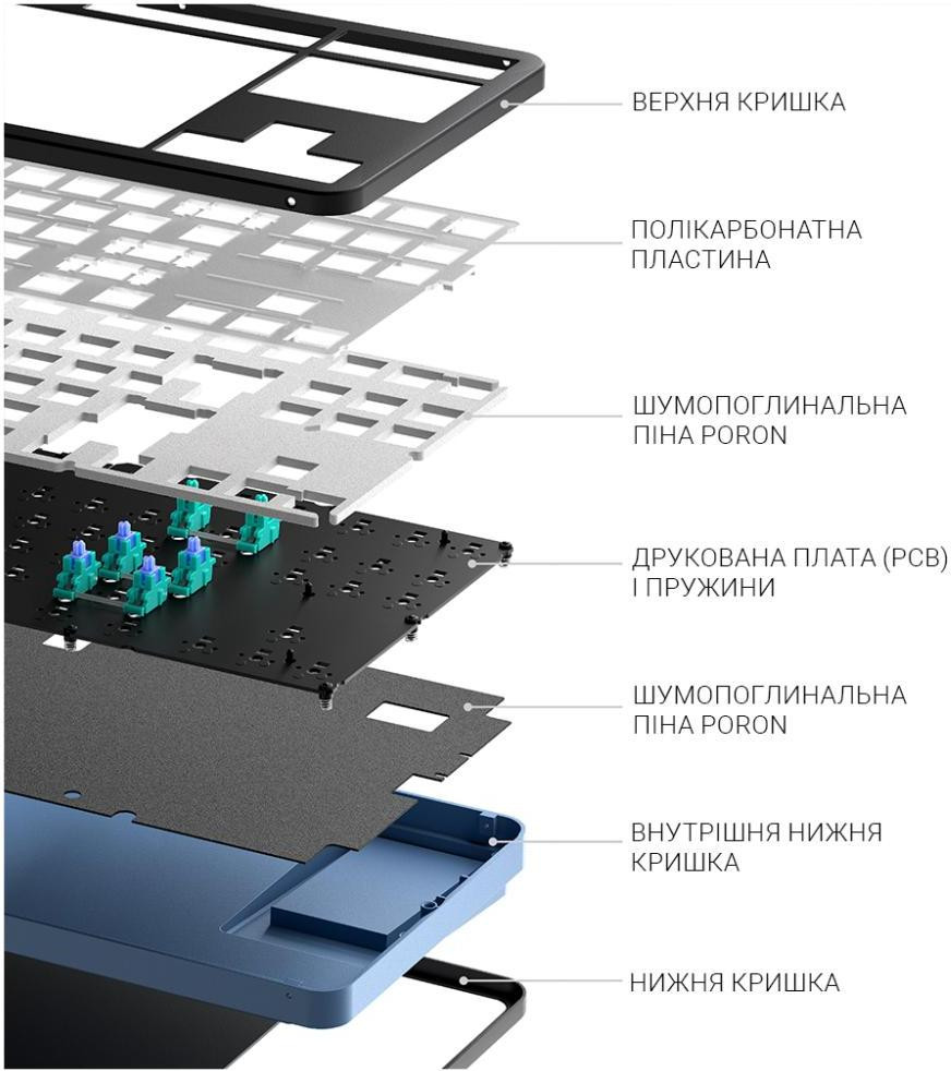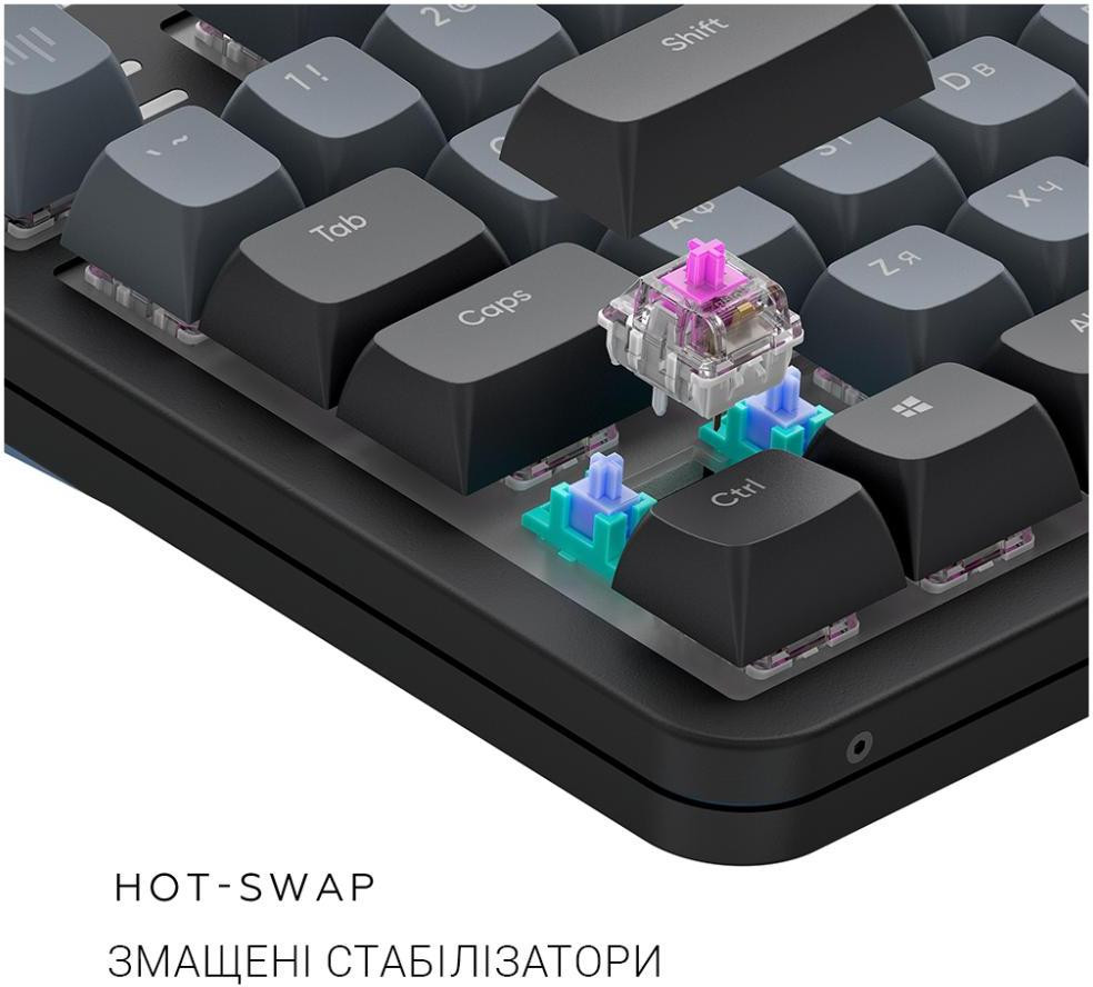 Комплектація Клавіатура, знімний кабель USB-C - USB-A, пулер для кейкапів та перемикачів, чотири дод