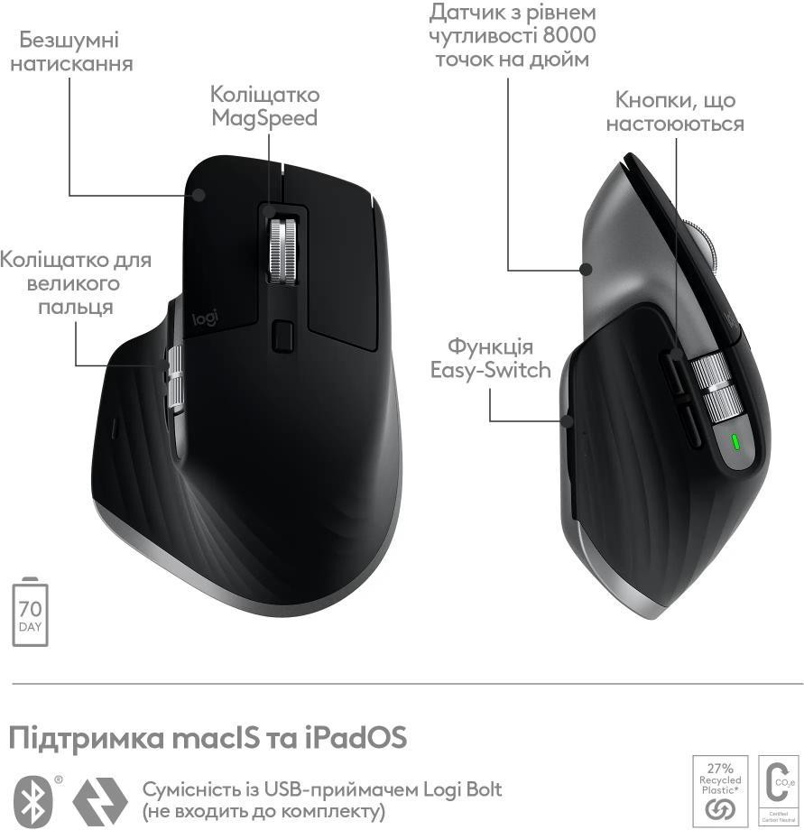 Миша бездротова Logitech MX Master 3S For Mac Space Grey (910-006571)
