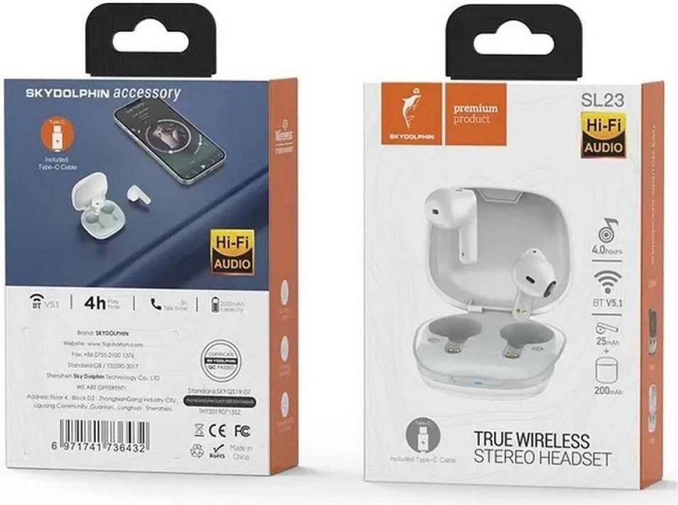 Навушники бездротові TWS SkyDolphin SL23 White (SDBTE-000181)