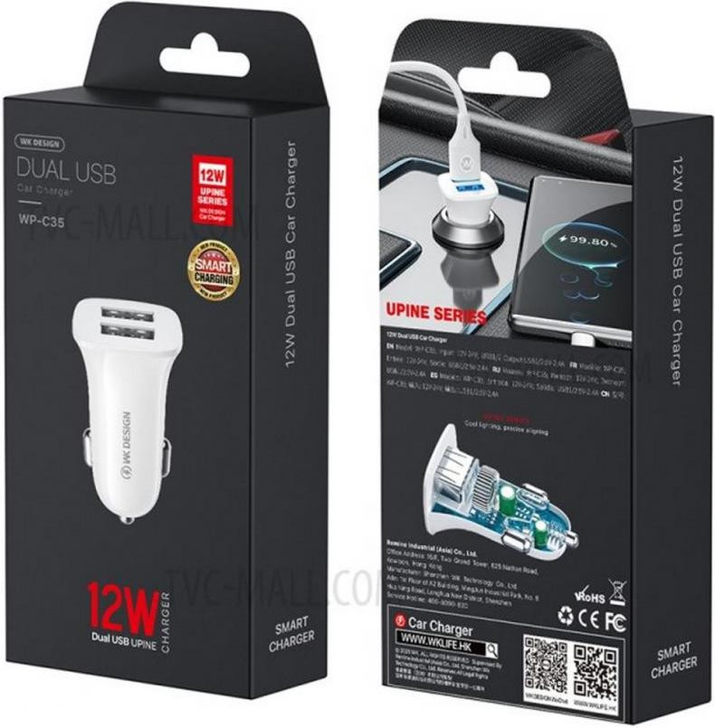 Автомобільний зарядний пристрій WK WP-C35 White (6941027616468)