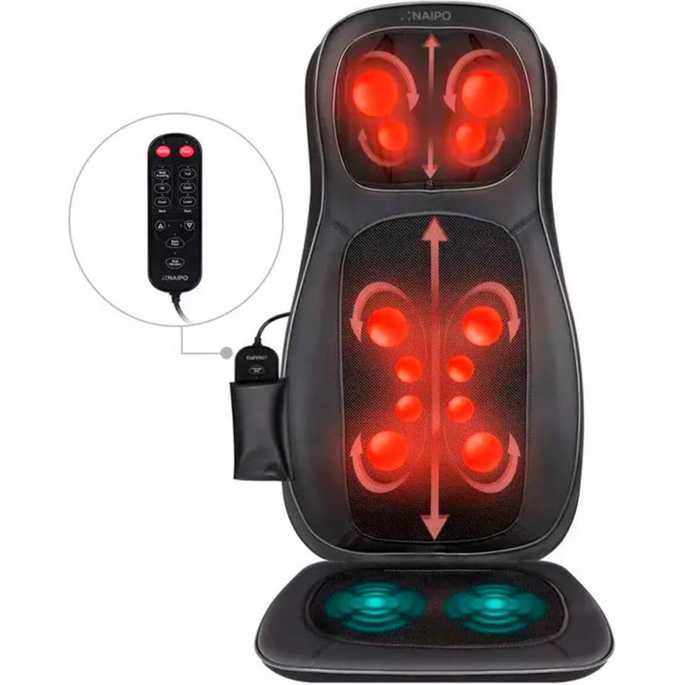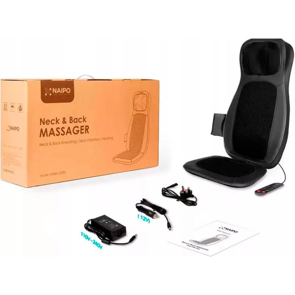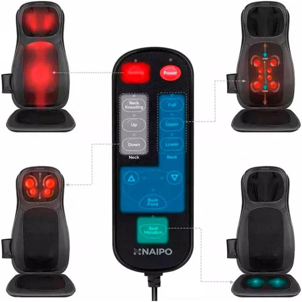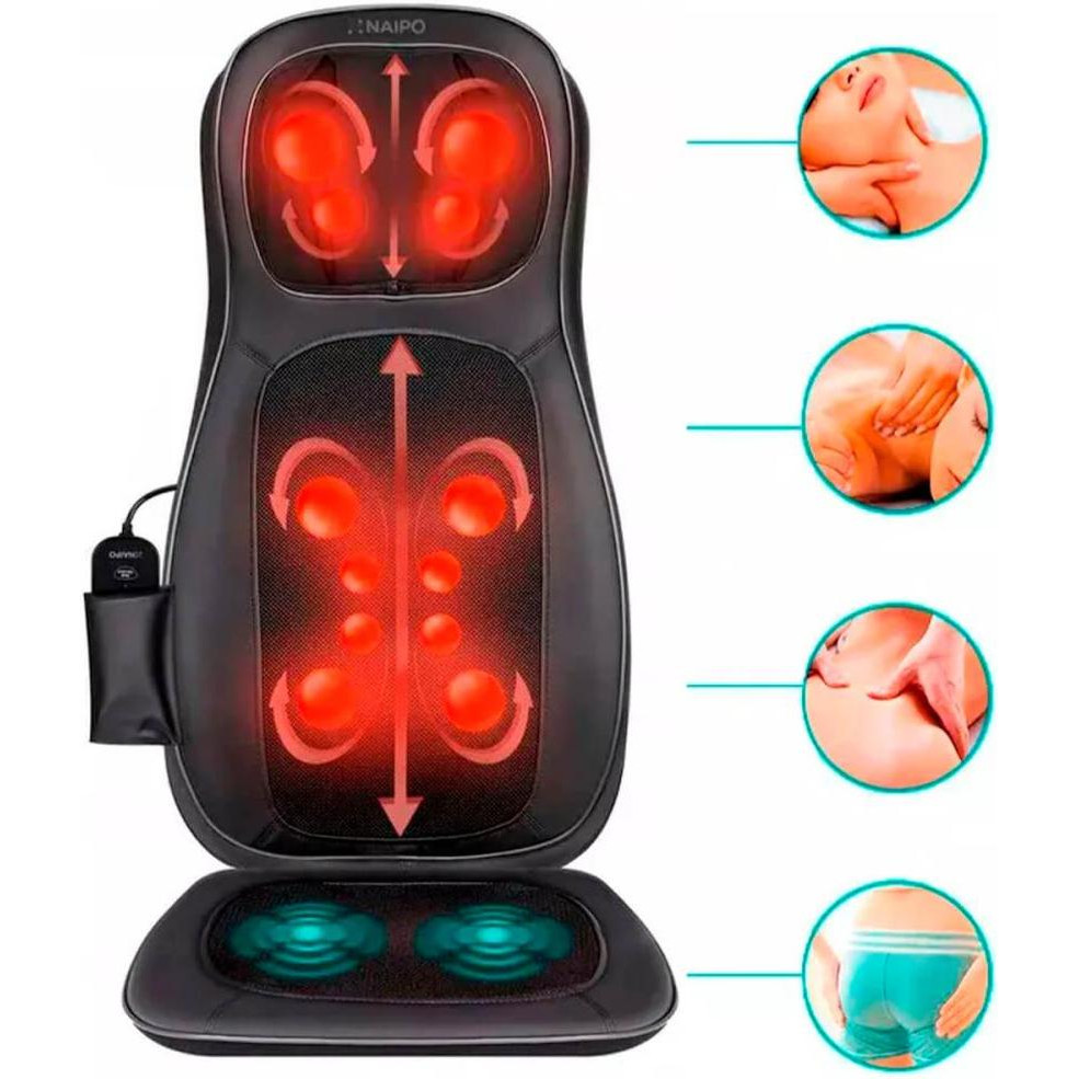 Масажна накидка на крісло Naipo Neck and Back, підігрів, вібрація, чорна (MGBK-C2030)