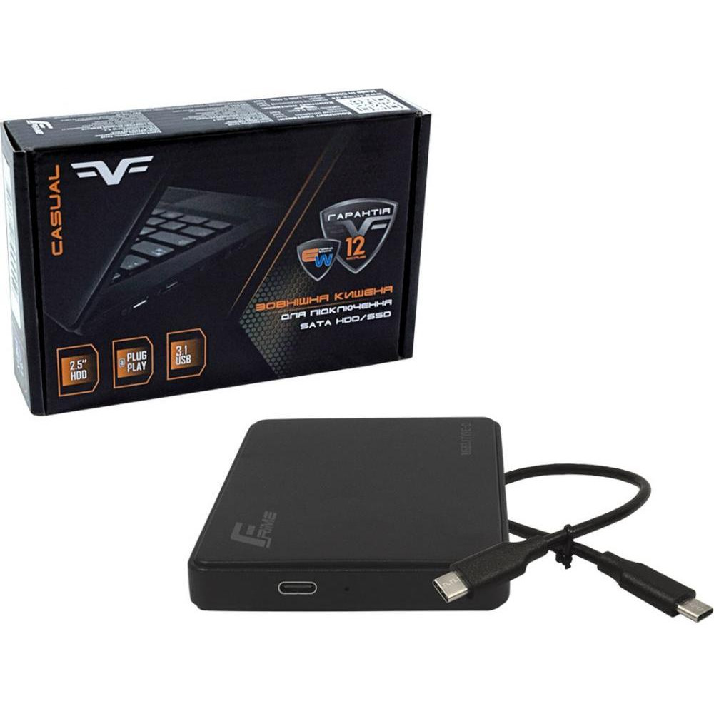 Зовнішня кишеня Frime для HDD/SSD 2.5 SATA, USB 3.1 Type-C, пластик, Black (FHE10.25U31)