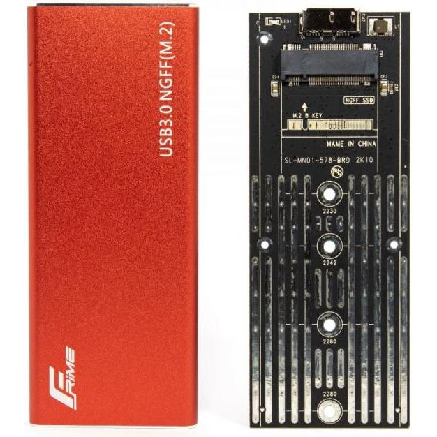 Зовнішня кишеня Frime для M.2 NGFF SATA, USB 3.0, Metal, Red (FHE203.M2U30)