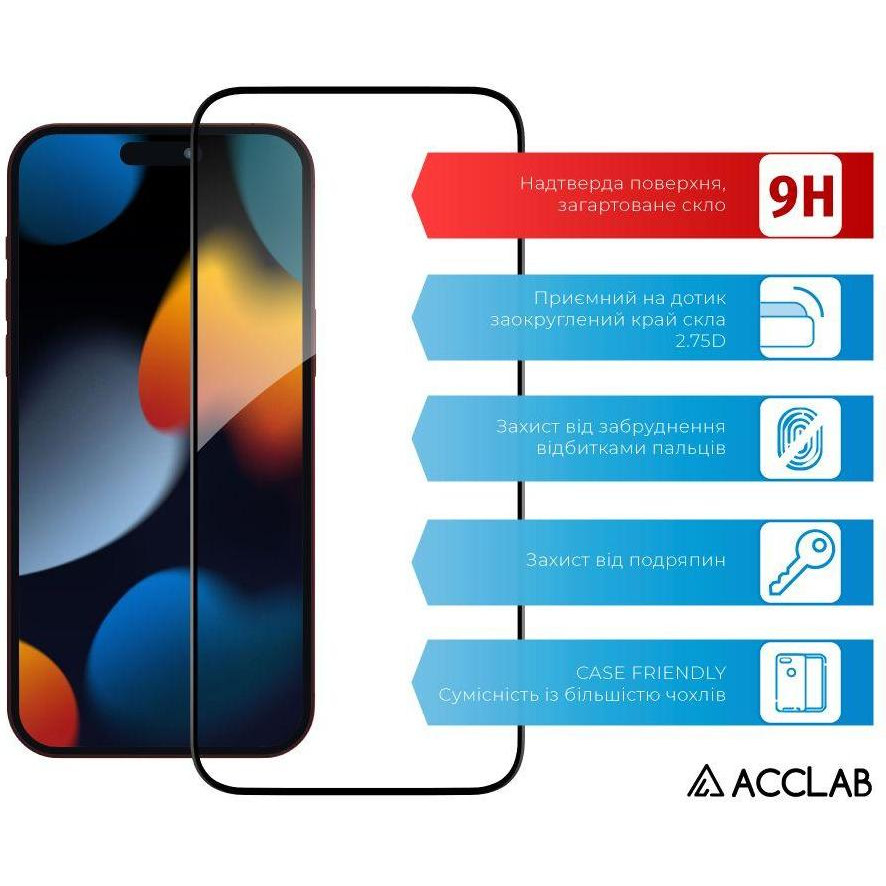Захисне скло ACCLAB Full Glue для Apple iPhone 15 Pro Black (1283126575389)