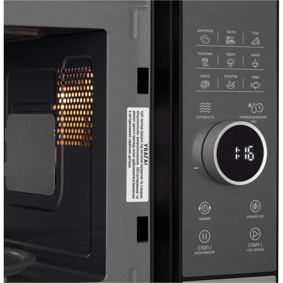 Мікрохвильова піч ARDESTO WO-823EB, 800Вт, 23л, електронне керування, дисплей, відкривання ручкою, чорна