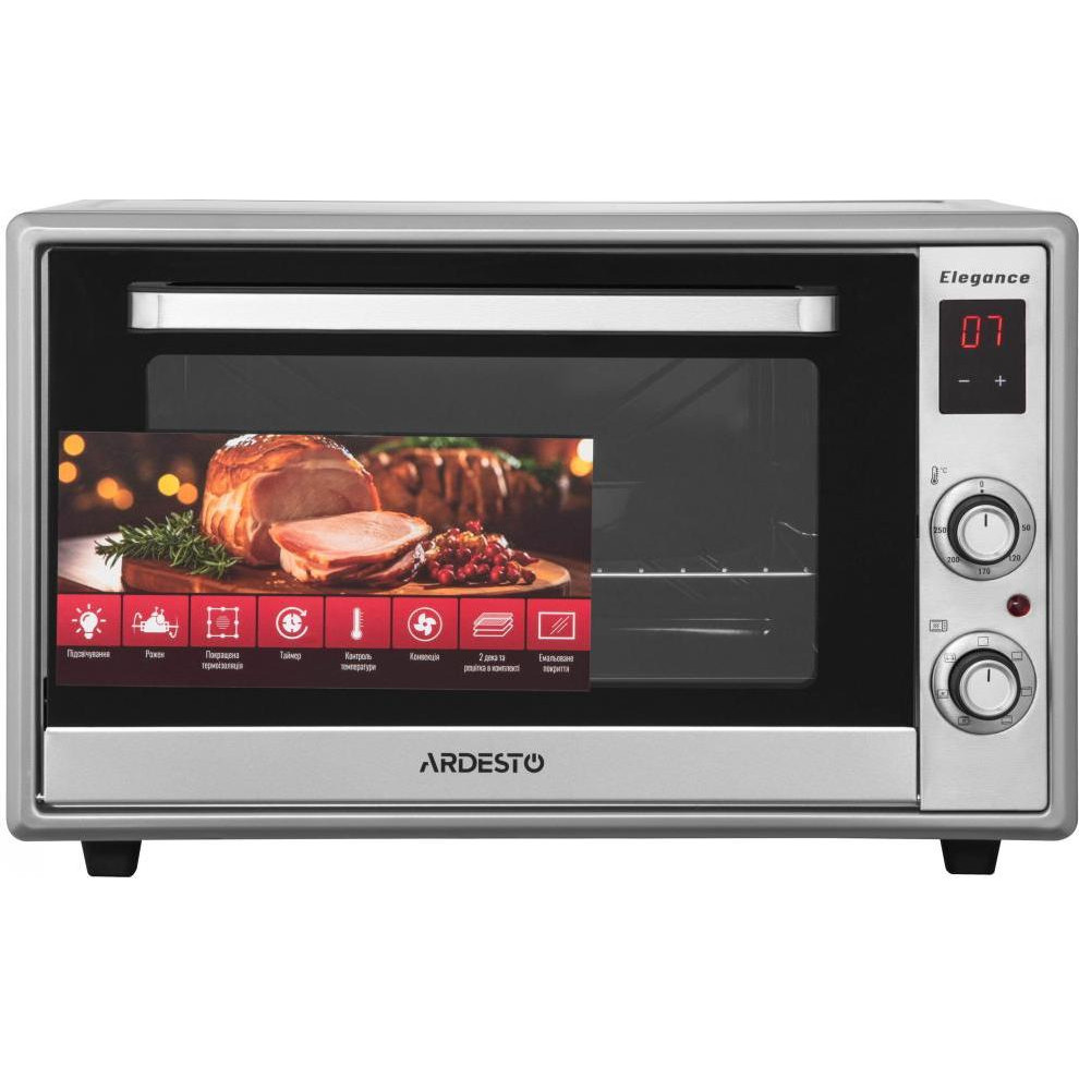 Піч електрична ARDESTO Elegance, 60л, 2000Вт, конвенція, подвійне скло, рожен, сіра (MEO-F60RCEL)