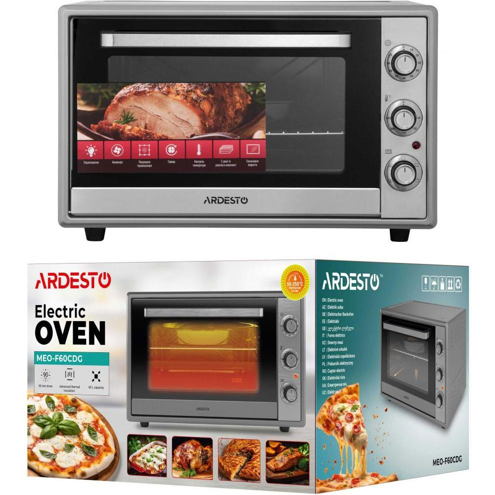 Піч електрична ARDESTO, 60л, 2000Вт, механічне керування, конвекція, подвійне скло, сіра (MEO-F60CDG)