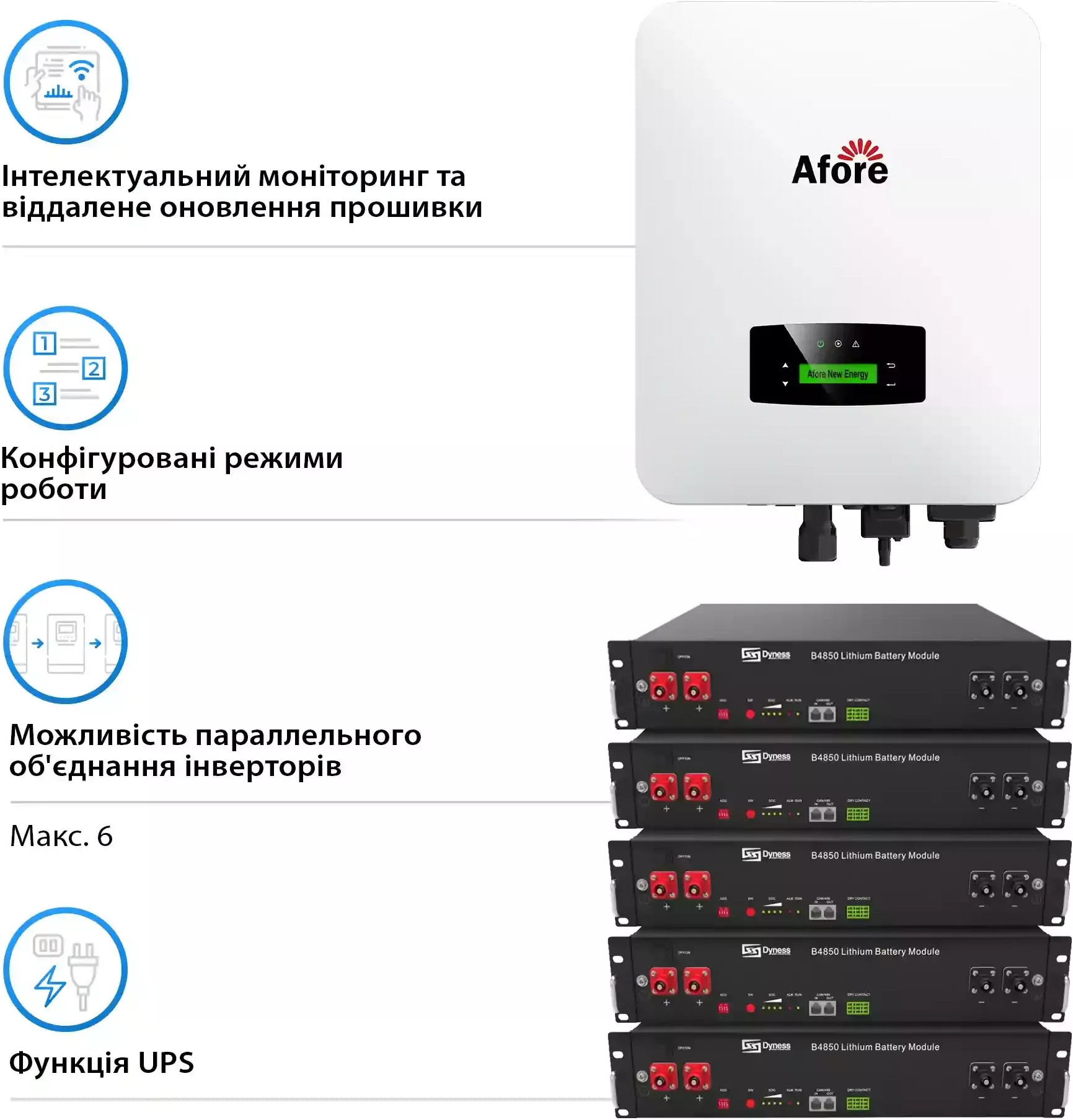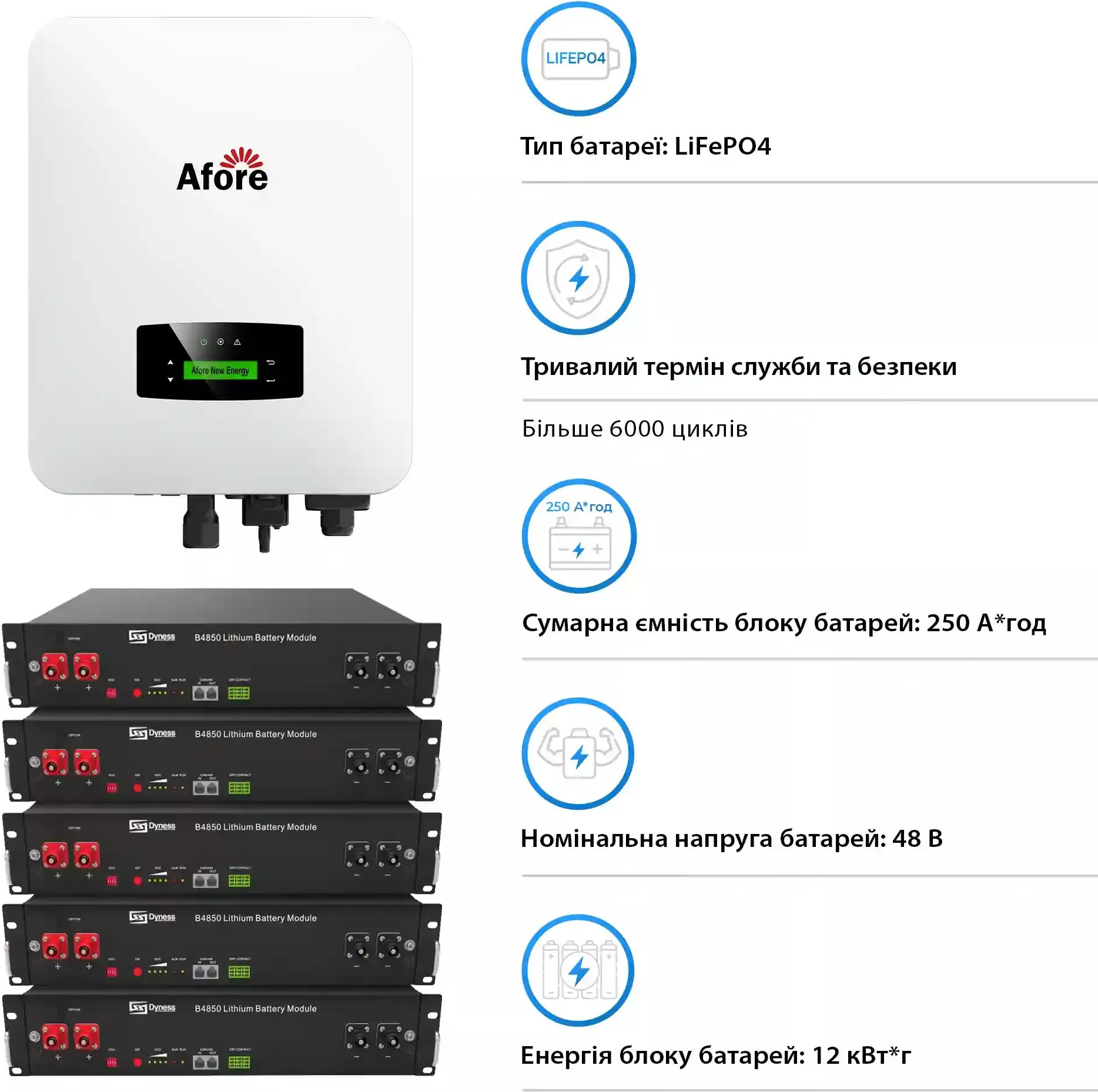 Система зберігання енергії Solarverse, 6kW, 12kWh, 5 Batteries, LiFePO4, 6000 циклів (SVR32-1AF6K1-LDY12K1-0)