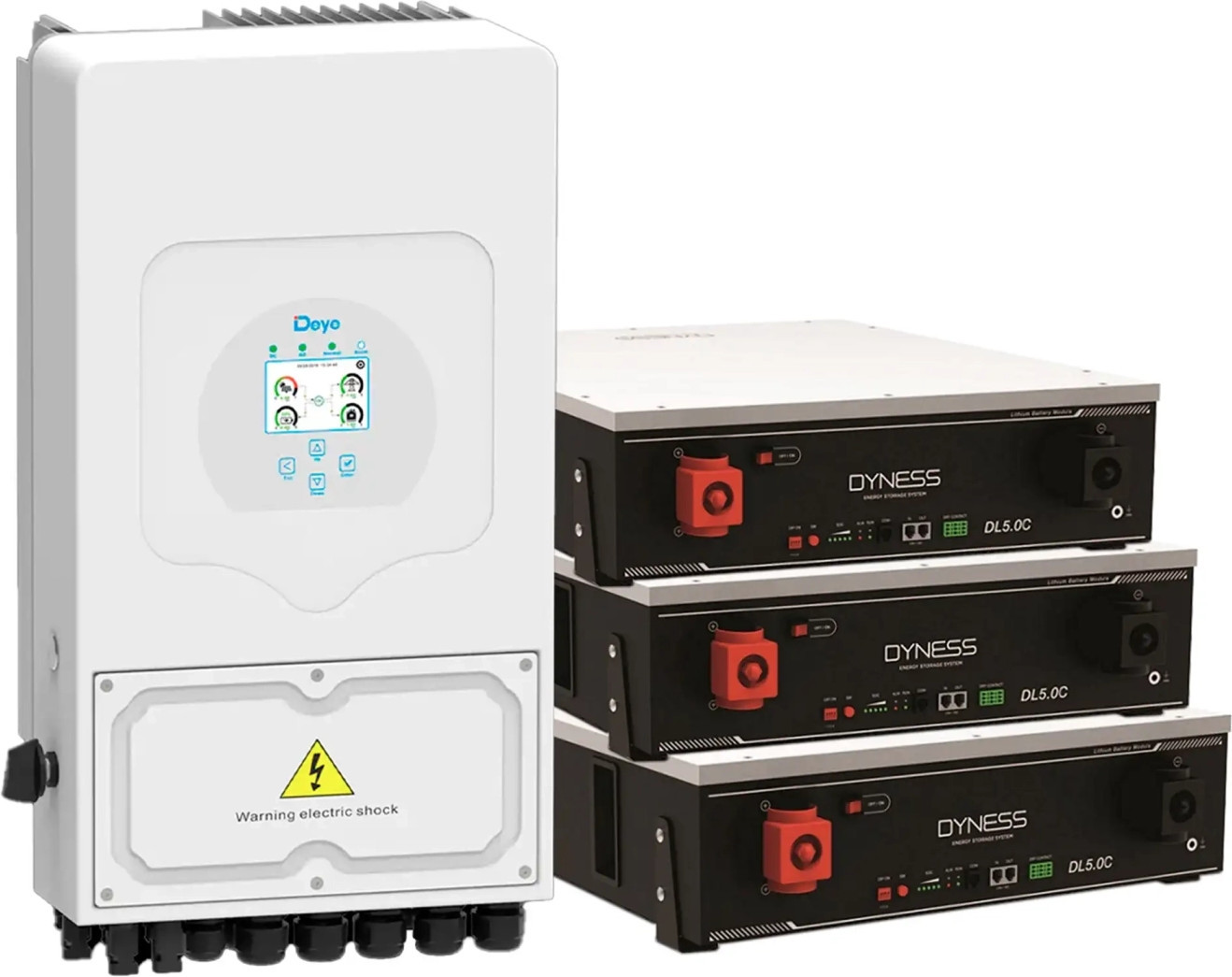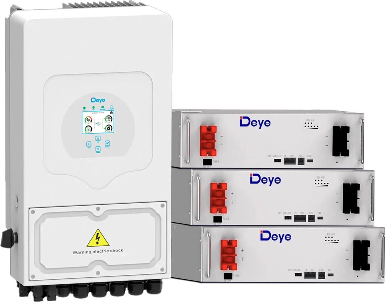 Система зберігання енергії DEYE, 8kW, 15.36kWh, 3 Batteries, LiFePO4, 6000 циклів (SUN-8K-SG01LP1-EU-3DY15.36K-LFP)