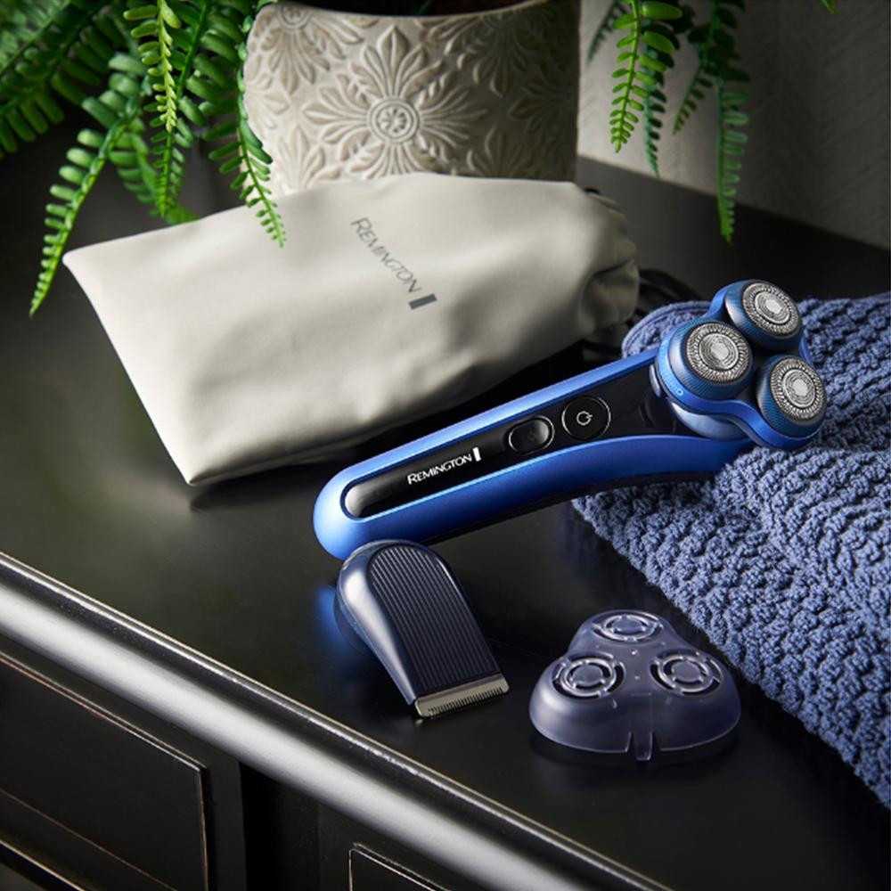 Електрична бритва роторна Remington X7 Limitless X, 3 головки для бриття, мережа, сухе/вологе бриття, тример, водонепроникна, чорно-синя (XR1775)