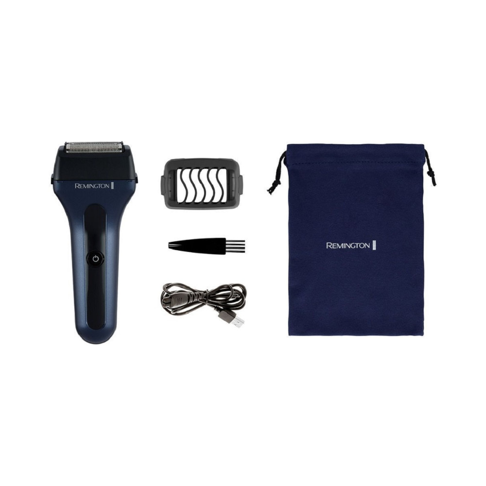 Електрична бритва сіткова Remington F7 Style, 3 головки для бриття, Ni-Mh, сухе бриття, тример, USB-C, чорно-синя (F7000)