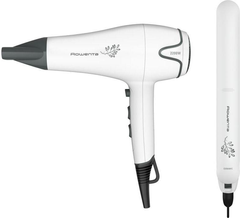 Комплект фен,випрямляч Rowenta Pure Collection, 2200Вт, 2 режими, дифузор, щипці для волосся (200 градусів, кераміка), біло-чорний (YD3057F0)