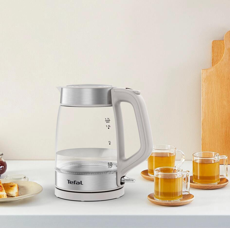 Електрочайник Tefal Glass Kettle, 1.7л, скло, з підсвіткою, біло-срібний (KI605B30)