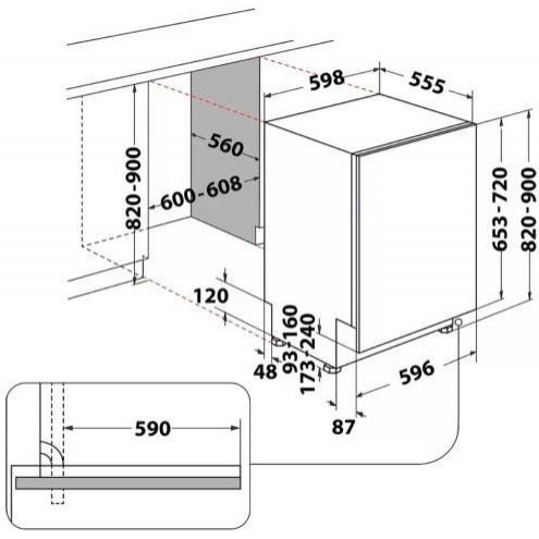 Посудомийна машина вбудована Whirlpool W2IHD526A, для 13 комплектів посуду, A++, 60см, дисплей, інвертор, біла