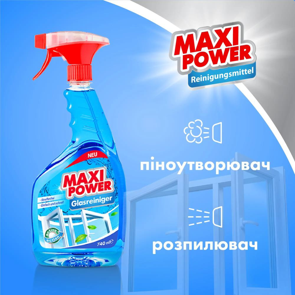 Будь-які поверхні сяють, якщо Maxi Power розпиляють! Простий та дієвий засіб для миття скляних та гл