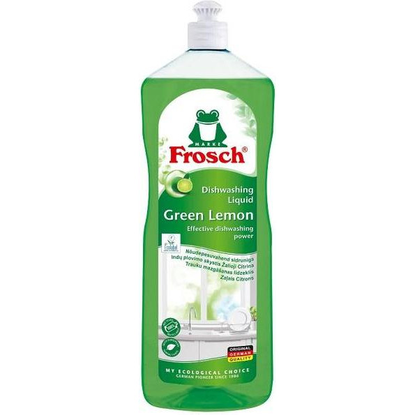 Засіб для ручного миття посуду Frosch, з ароматом Зелений лимон, 1л (4009175148094/4009175170675)