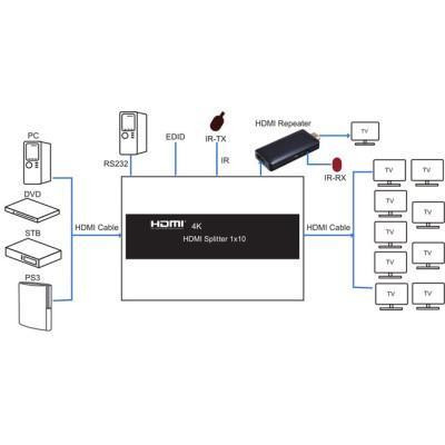 Сплітер PowerPlant HDMI 1x10 V1.4, 3D, 4K/30hz (HDSP10-V1.4)