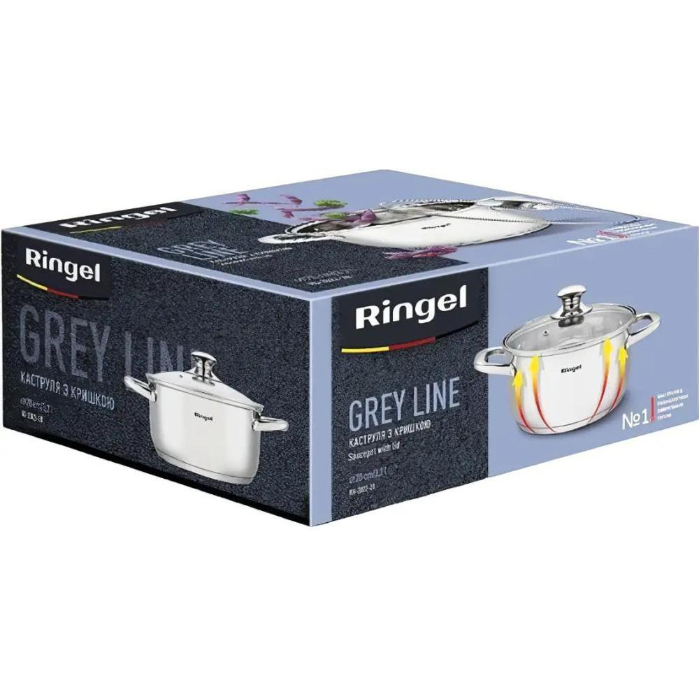 Каструля Ringel Grey line, 20см, 3.2л, з кришкою, нержавіюча сталь (RG-2022-20)
