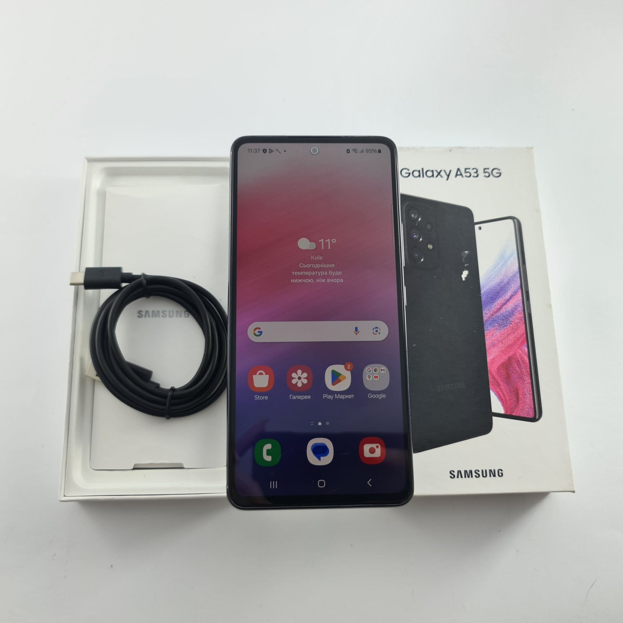 Стан: пристрій зі слідами експлуатації; Функціонал: пристрій протестований, всі функції працюють справно; Дисплей: незначне вигоряння, помітні подряпини, нерівномірне підсвічування; Корпус: помітні подряпини, плями; Комплектація: кабель usb-a to usb-c, оригінальна коробка; Гарантія: 6 міс.;