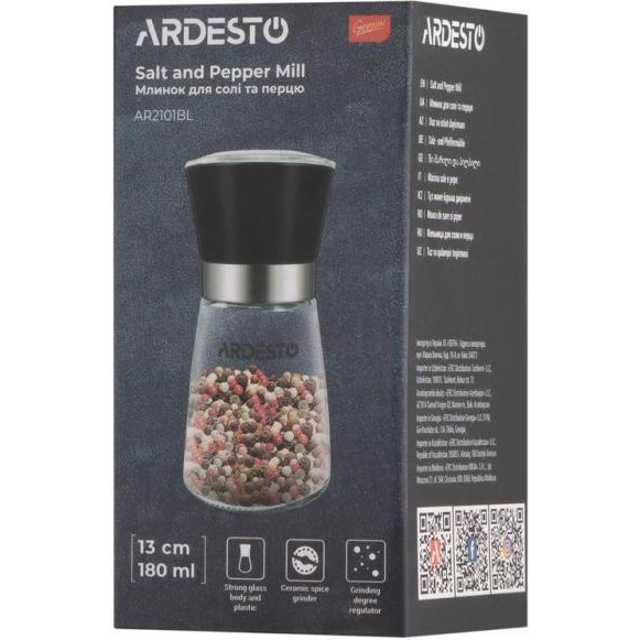 Млинок Ardesto Gemini, для солі та перцю, 180мл, скло/пластик, прозорий/чорний (AR2101BL)