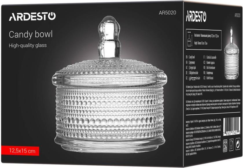 Цукерниця Ardesto Verbena, 12.5см, скло, прозора (AR5020)