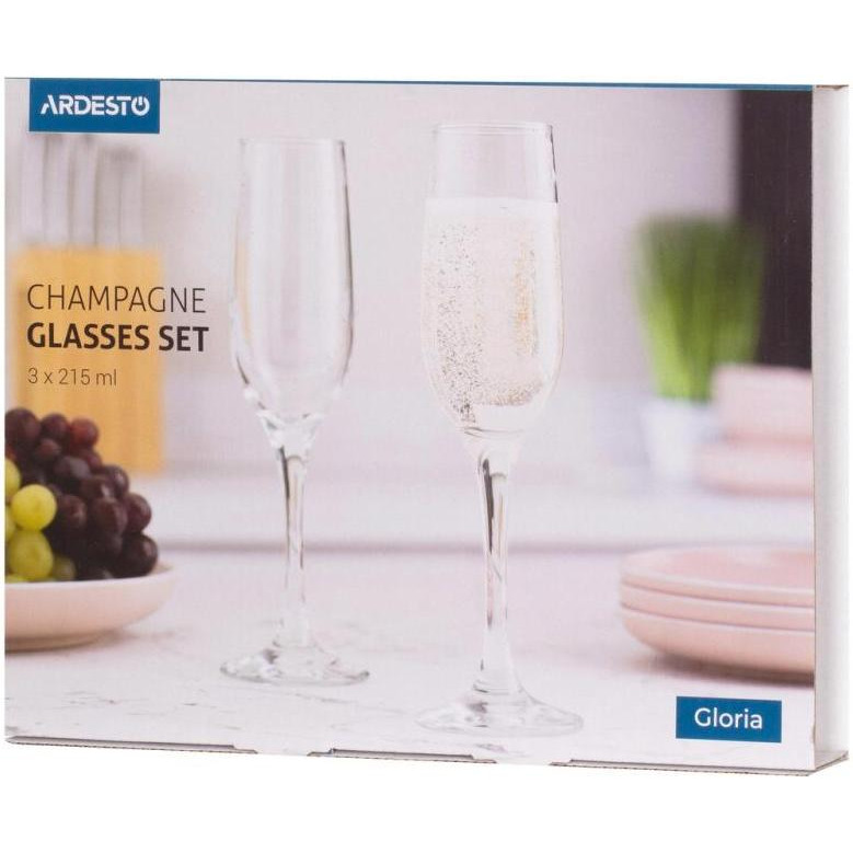 Набір келихів Ardesto Gloria, для шампанського, 215мл, 3шт, скло, прозорий (AR2621GCT)
