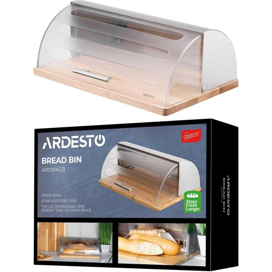 Хлібниця Ardesto Gemini, дерево/пластик/нержавіюча сталь (AR0914GB)