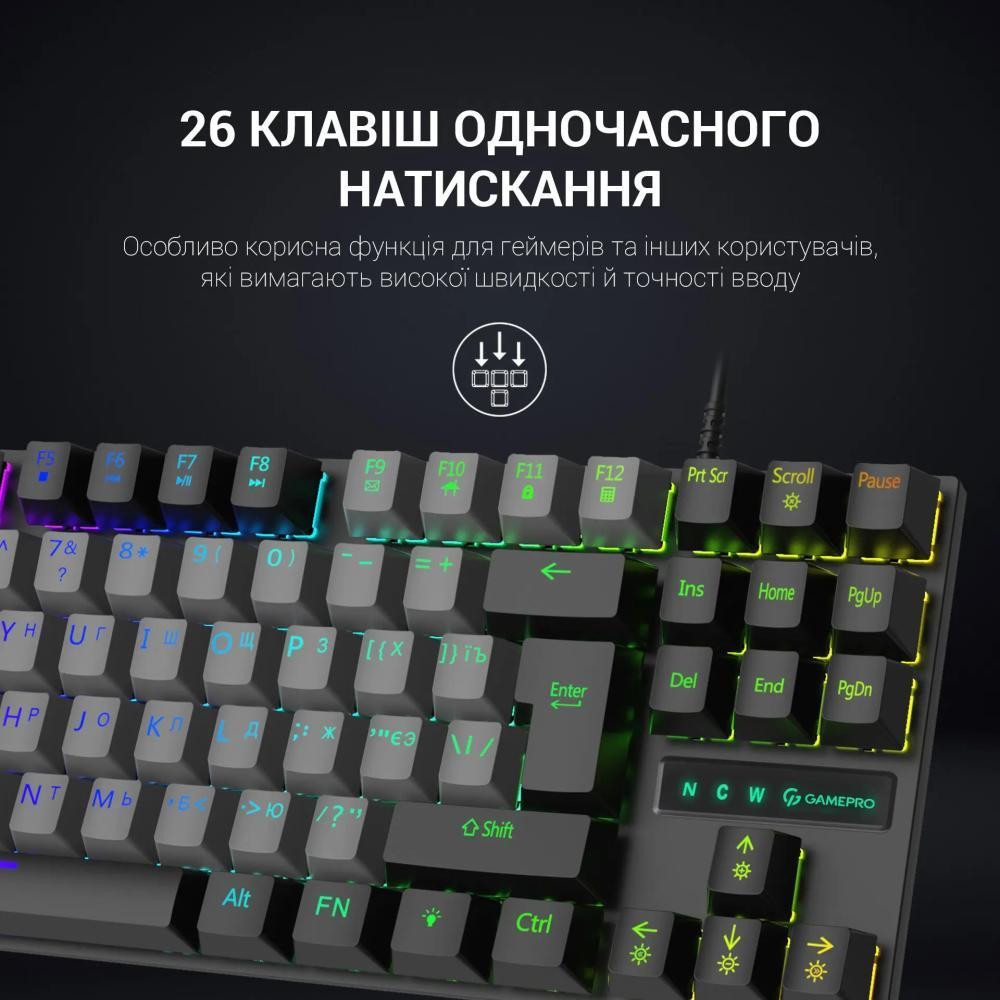 Клавіатура дротова GamePro MK100B, Blue Switch, LED, USB, Black