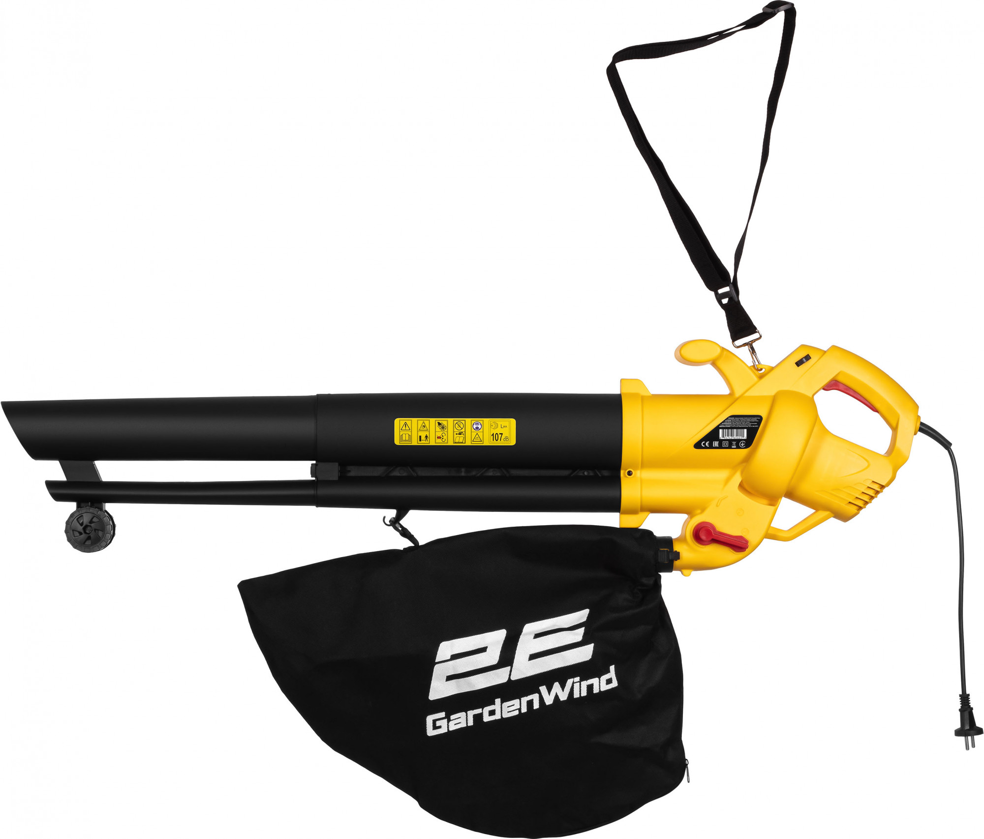 повітродув-пилосос садовий, сміттєзбірник, плечовий ремінь, колеса