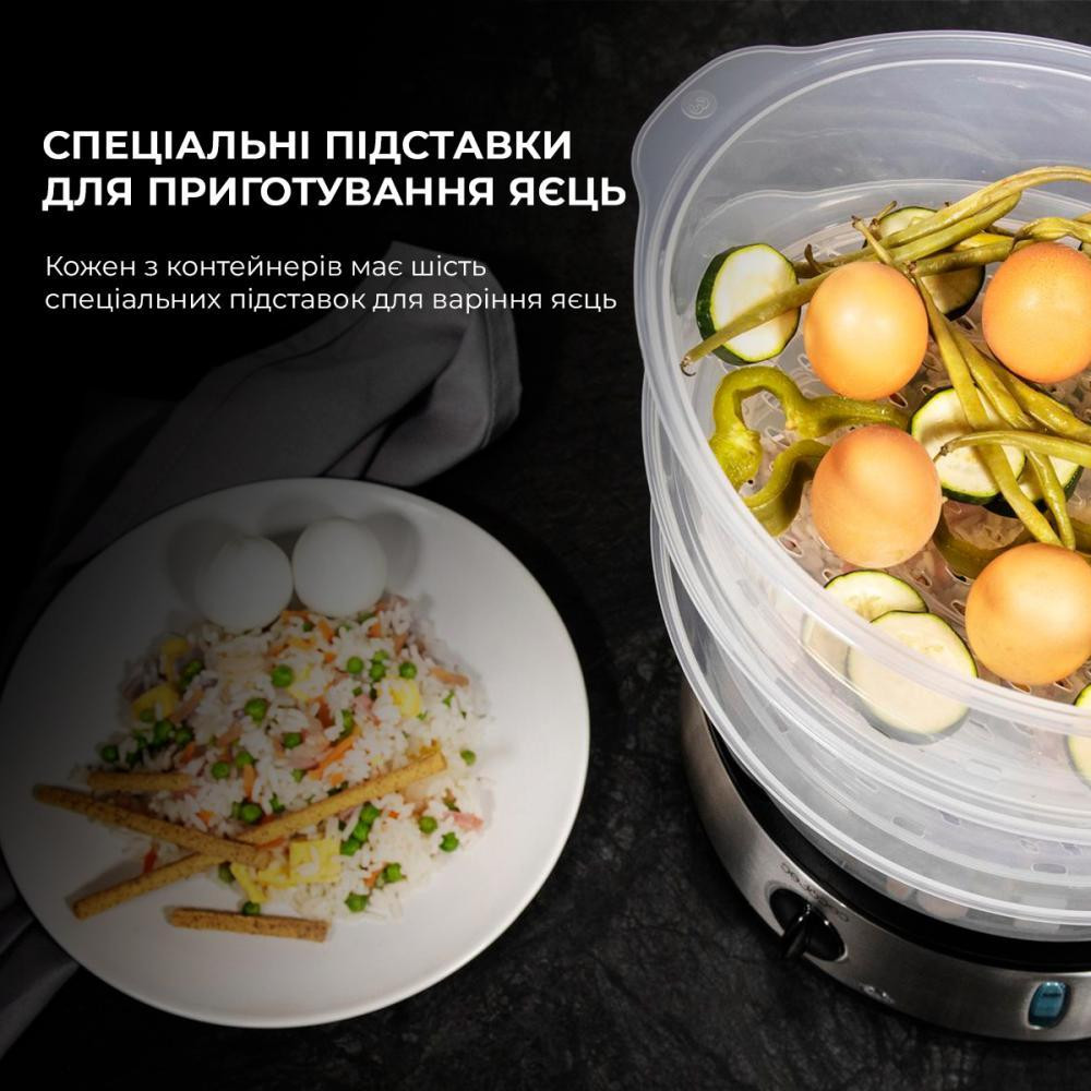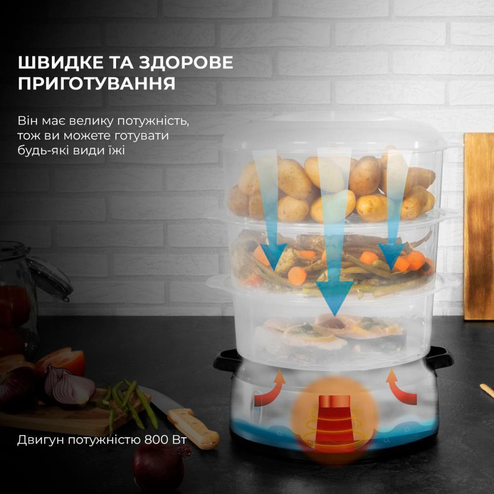 Можливість приготування до 3-х страв за один раз завдяки 3-м контейнерів загальною ємністю 9 л. Світ