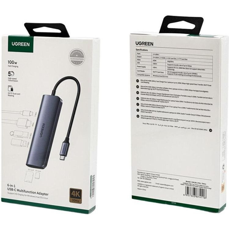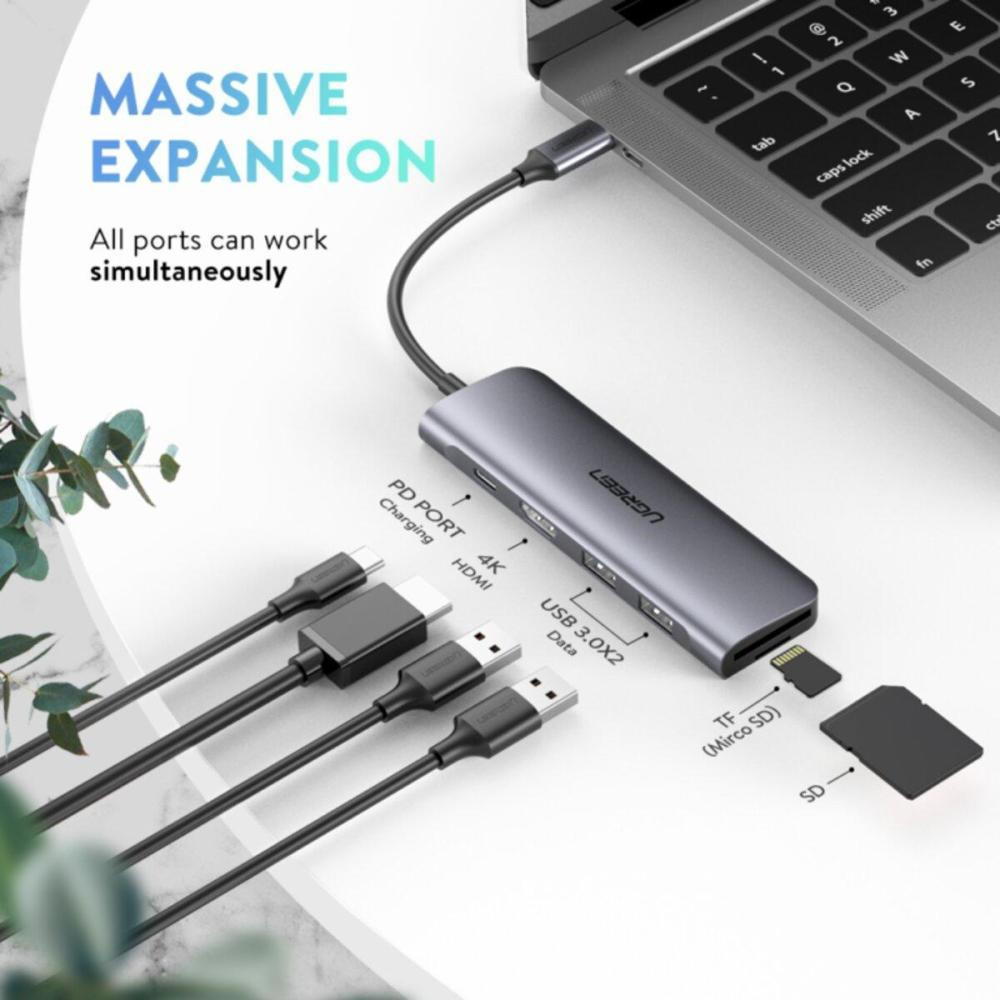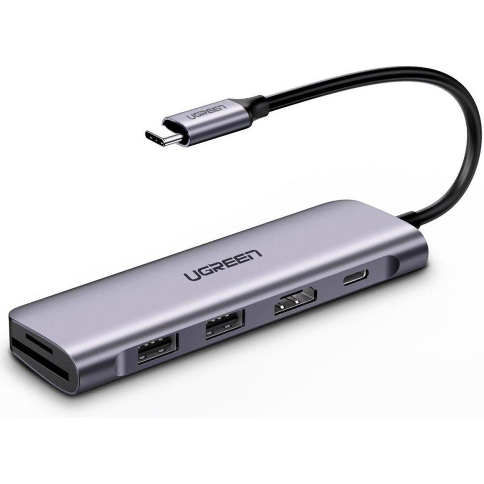 USB-хаб Ugreen, USB Type-C to 2 x USB 3.0 Type-A + HDMI + TF/SD with PD Power Supply, Space Gray (UGR-70411)