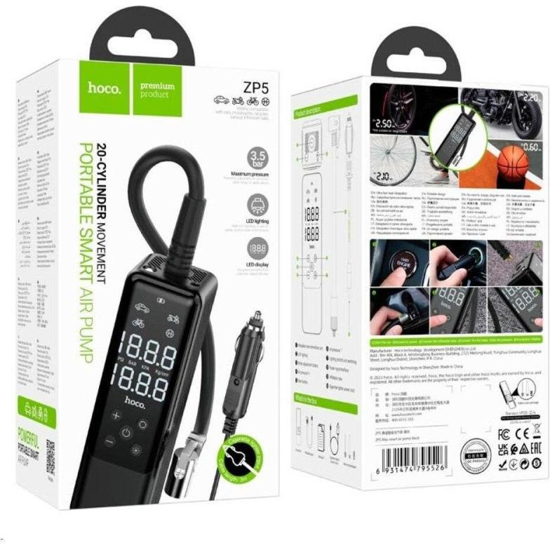 Автомобільний насос Hoco ZP5 May smart air pump, Black (6931474795526)