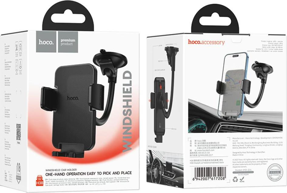 Автомобільний тримач для смартфона Hoco H38 Cheetah, Black (6942007617208)