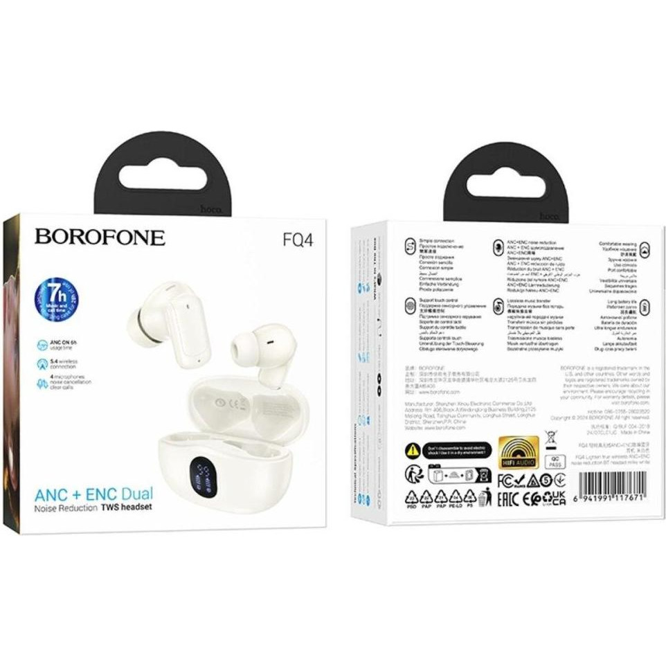 Навушники бездротові TWS Borofone FQ4 Lighten, Milky White (6941991117671)