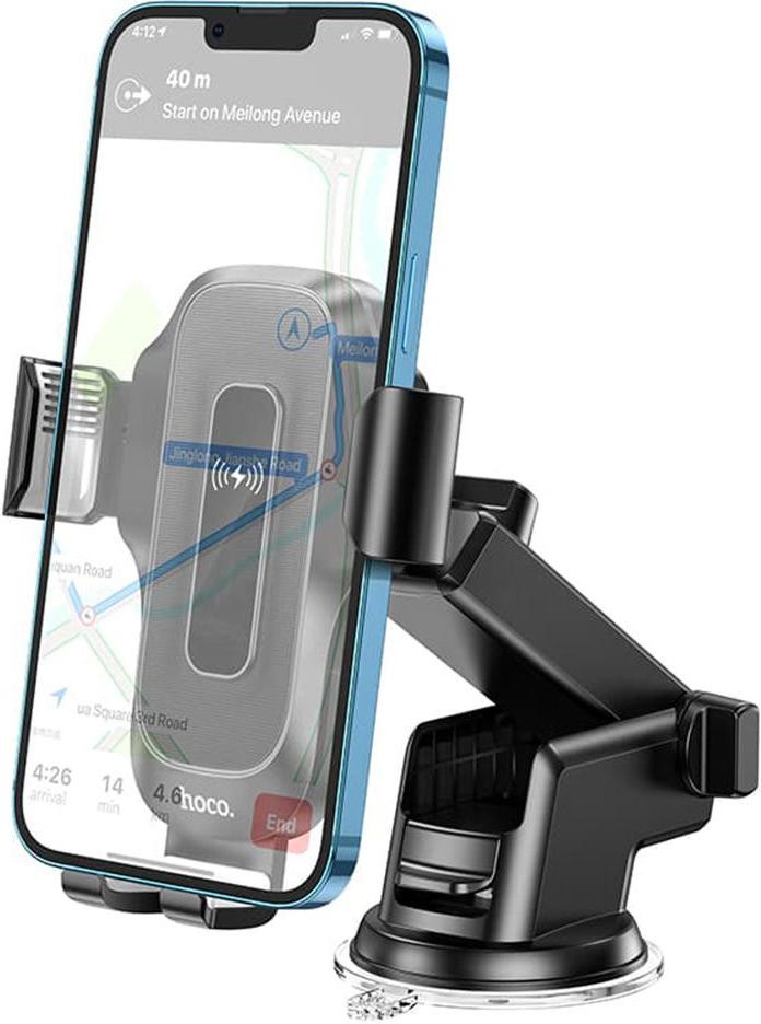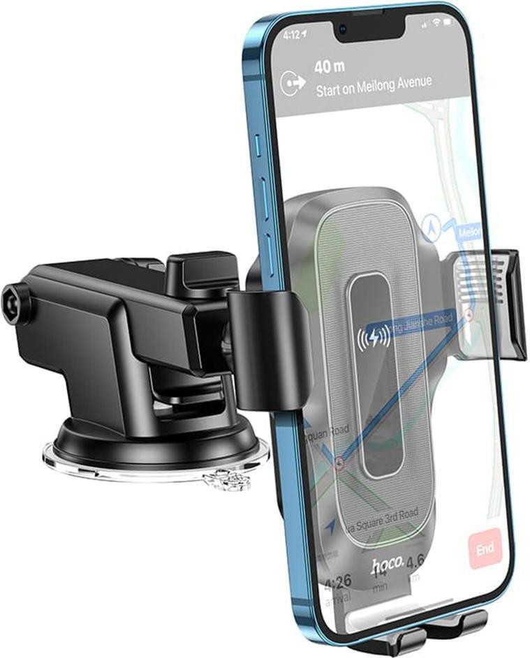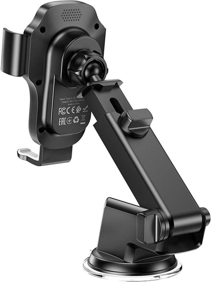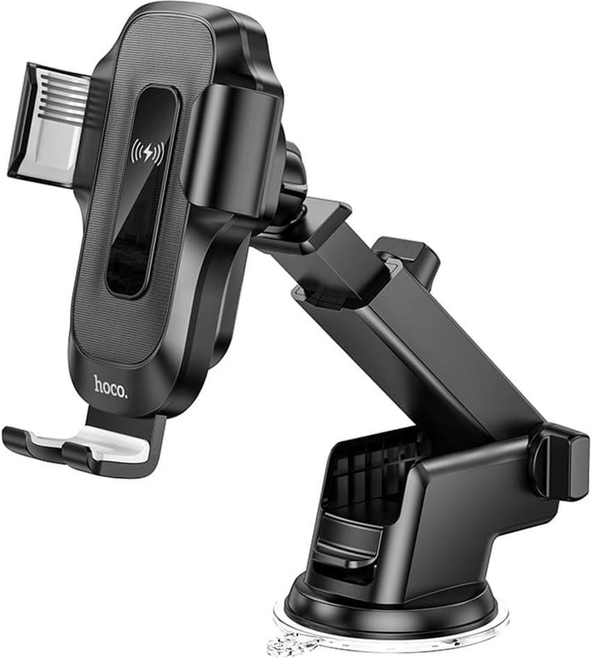 Автомобільний тримач для смартфона з бездротовим зарядним пристроєм Hoco HW3 Wise, Black (6931474791849)