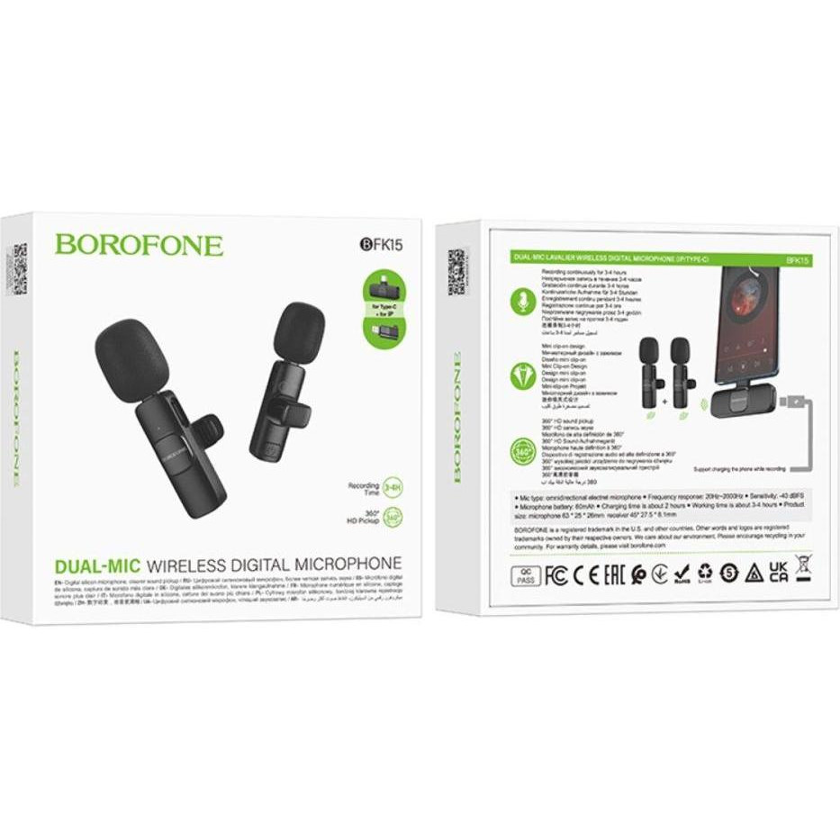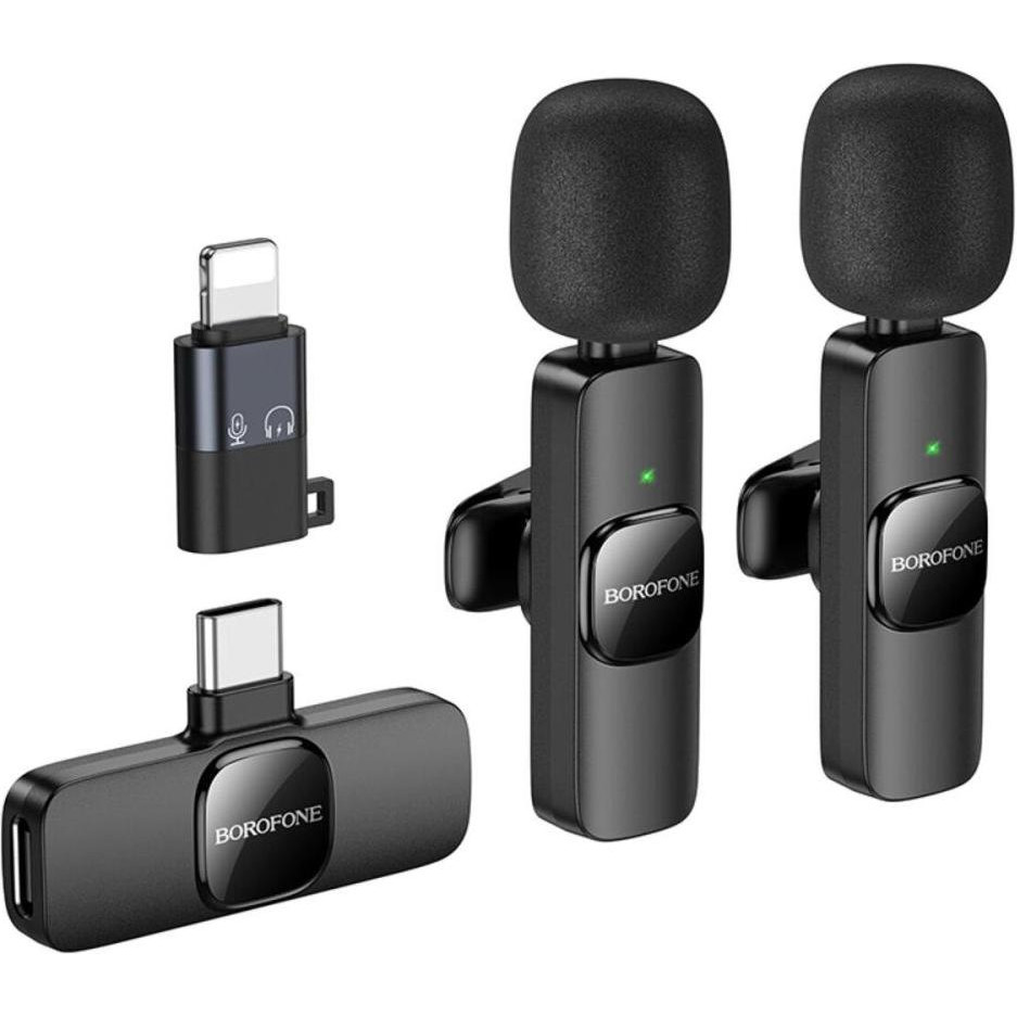 Бездротова мікрофонна система Borofone BFK15 Dual-mic, Lightning/ USB Type-C, Black (6941991117107)