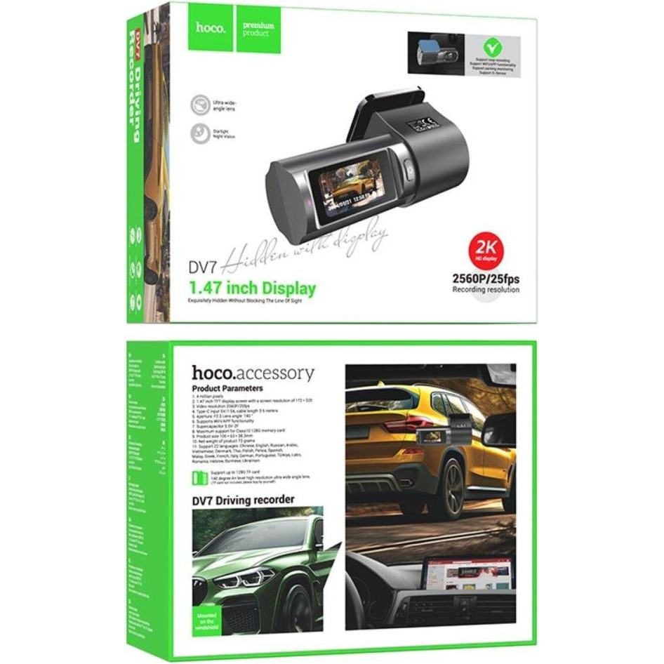 Відеореєстратор Hoco DV7, дисплей 2К, чорний (6942007623377)