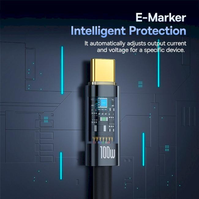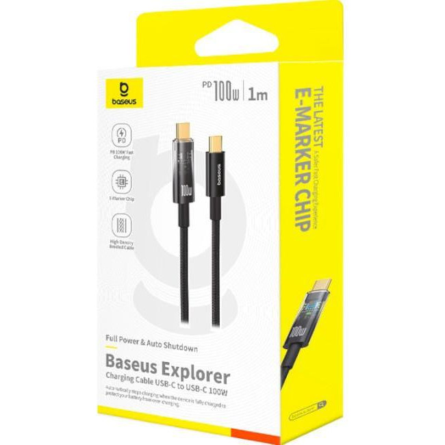 Кабель Baseus Explorer Charging Cable, USB Type-C to USB Type-C, 100W, автовимкнення, 1м, Cluster Black (P10319703111-00)
