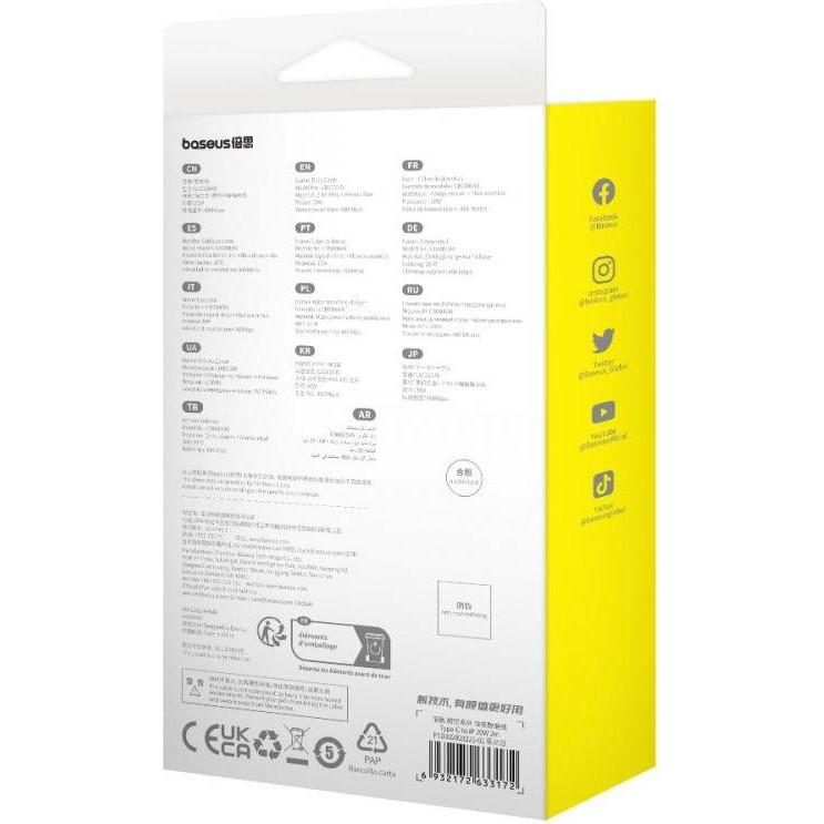 Кабель Baseus Unbreakable Series Fast Charging Data Cable, USB Type-C to Lightning, 20W, 2м, Stellar White (P10355803221-01)