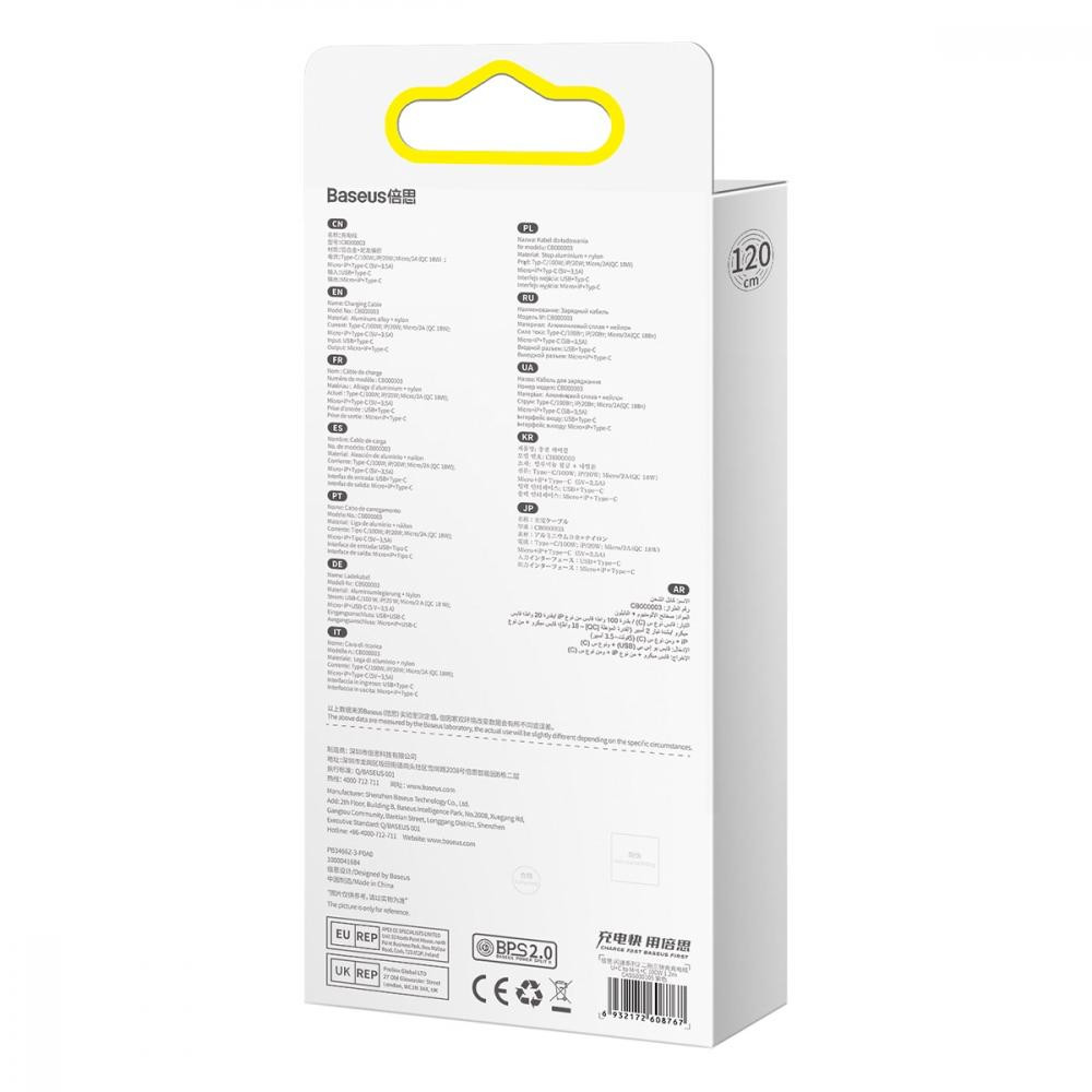 Кабель Baseus Flash Series II Two-for-three Charging Cable, USB Type-A/USB Type-C to Micro USB/Lightning/USB Type-C, 100W, 1.2м, Purple (CASS030105)