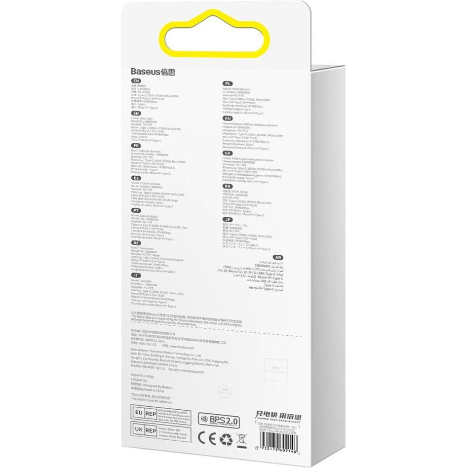 Кабель Baseus Bright Mirror 2 Series Retractable 3-in-1, USB Type-C to Micro USB/Lightning/USB Type-C, 100W, 1.1м, Blue (CAMJ010203)