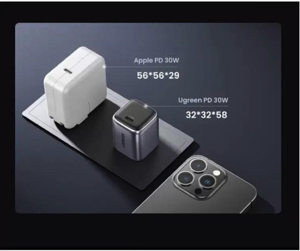 Мережевий зарядний пристрій Ugreen CD319, USB Type-C, GaN, 30W, EU, Space Gray (UGR-90666)