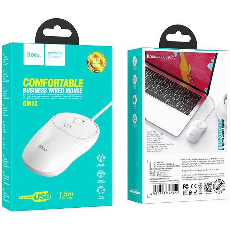 Миша дротова Hoco GM13 Esteem, White (6931474757852)