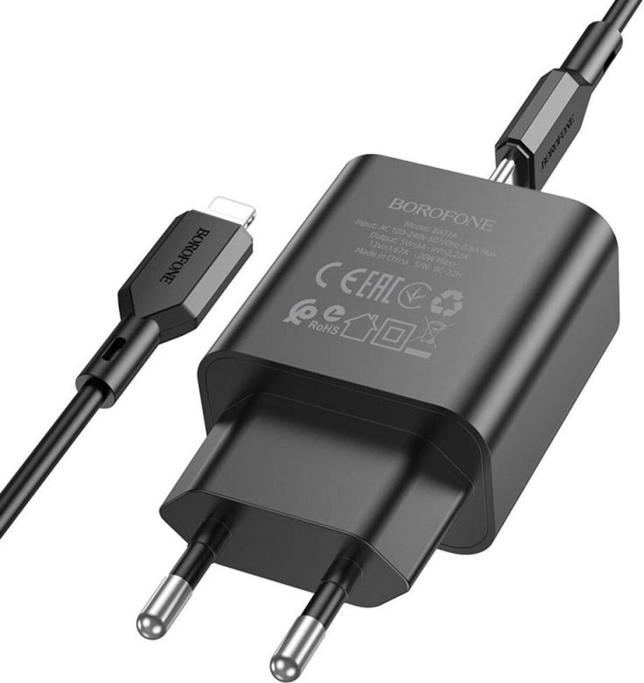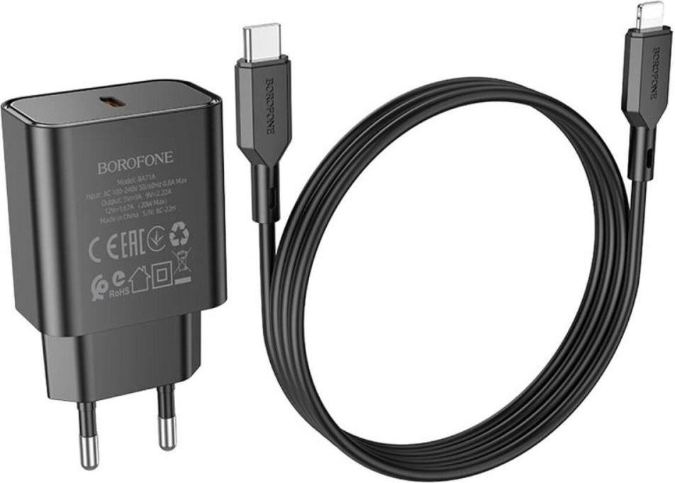 Мережевий зарядний пристрій Borofone BA71A Power, PD 20W, Black (BA71AB)