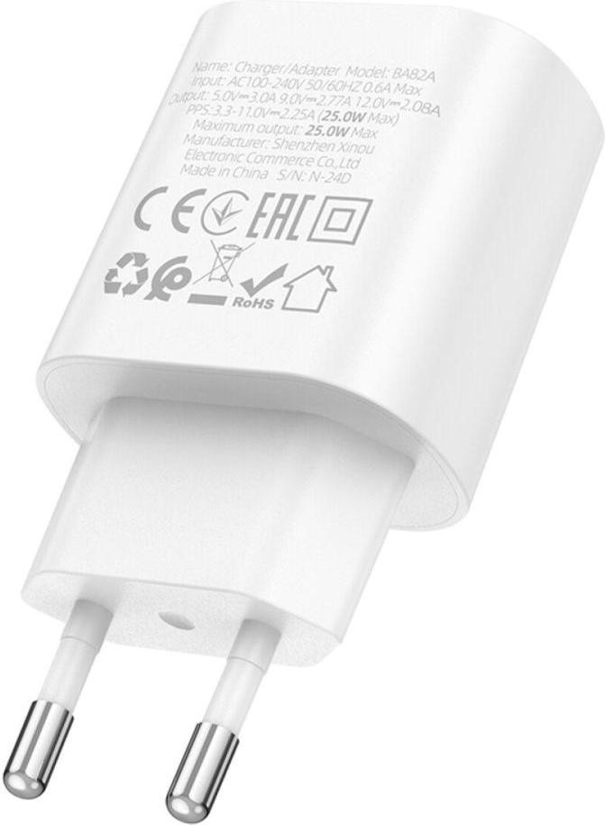 Мережевий зарядний пристрій Borofone BA82A Platinum, PD 25W, EU, White (6941991112256)