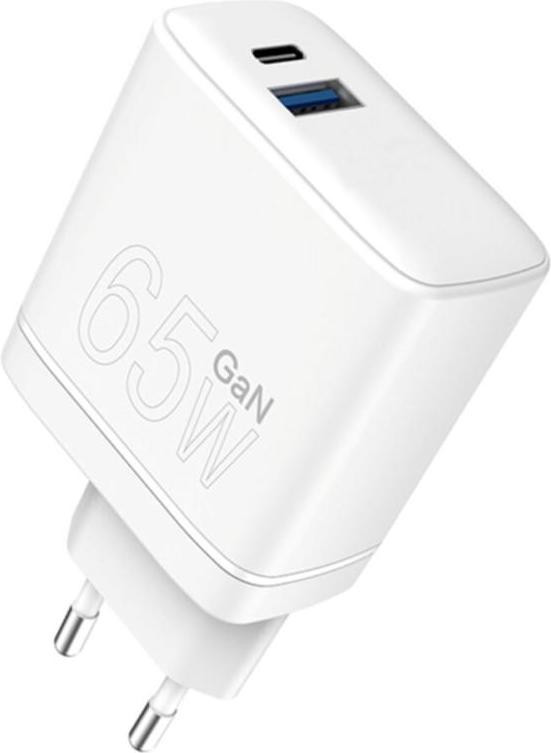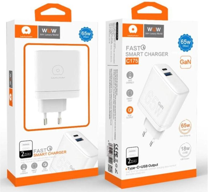 Мережевий зарядний пристрій WUW C175, USB Type-C/USB Type-A, 65W, GaN, White (6972573335220)