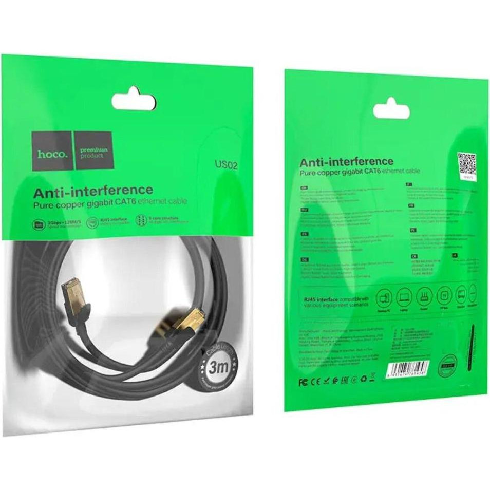 Патч-корд Hoco US02, 3м, Black (6931474761965)